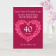 Personaliza esta tarjeta de aniversario de bodas de rubí con tus padres, foto, año de casamiento y palabras interiores. El ejemplo dice: Queridos Nana & Abuelo en su aniversario de bodas de rubí 40 años 25 de mayo de 1984 a 2024. Efecto de corazón de rubí rojo y diseño de Sarah Trett.