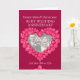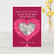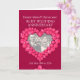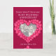 Personalice esta tarjeta de aniversario de bodas de rubí con sus padres, foto, año de casamiento y palabras interiores. El ejemplo dice: Queridos mamá y papá en su aniversario de bodas de rubí 25 de mayo de 1984 a 2024. Arte y diseño de corazón de rubí rojo por Sarah Trett.