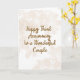 Tarjeta de aniversario de bodas número 3 con flores beige sobre fondo blanco.
