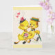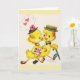 Tarjeta de felicitación de aniversario de bodas o aniversario retro / vintage. Adorables patitos paseando del brazo y muy enamorados. Corazones, flores y dulzura. Tarjeta perfecta para celebrar el amor.