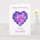 Una bonita y romántica tarjeta de aniversario para una esposa, con un corazón hecho de flores rosas y azules, de un collage de papel pintado a mano por Judy Adamson. Si desea que el texto de la portada se cambie de alguna manera (por ejemplo, una edad, persona o idioma diferente), por favor contácteme a través de mi tienda y estaré encantado de hacerlo de inmediato.