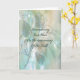 Tarjeta de recuerdo de fallecimiento para la mamá de alguien. El diseño es un verde pastel mezclado con hojas desvanecidas en el fondo. El interior está en blanco, para que puedas agregar tus propias palabras personales. Gracias a Design Cuts por algunos de los elementos del diseño.