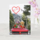 Tarjeta de San Valentín humorística personalizable con perros lindos y paisajes bonitos. Podrías personalizarla para un aniversario. La carretera de fondo a través de las montañas es de publicdomainpictures.net. El coche también es gracias a publicdomainpictures.net. Hay tres lugares donde puedes personalizar el texto, cambiar las fuentes y los colores de las fuentes.