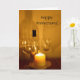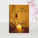 ¡Aquí hay una tarjeta de aniversario que evoca una sensación cálida y acogedora! Copas de vino y botella de vino con una vela encendida que proyecta sombras contra la pared. Y es fácil personalizar el mensaje interior.