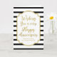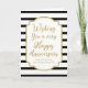Tarjeta de aniversario moderna para empleados con bandas clásicas en blanco y negro y detalles vintage en oro con elegante texto de estilo manuscrito.