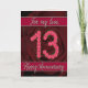 tarjeta de aniversario número 13 con rosas y hojas