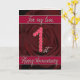 Tarjeta de aniversario número 1 con rosas y hojas
