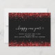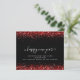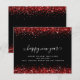 Tarjeta de Año Nuevo Feliz del Purpurina Rojo Negro. Un precio presupuestado alternativo de 4,5" x 5,6", en un ALMACENAMIENTO DE TARJETAS SEMI-GLOSS de 110 lb, de grosor similar al de una postal. Los sobres son un extra opcional y son algo más grandes que el tamaño de la tarjeta. Personalice fácilmente el texto a sus detalles.