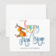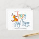 Nombre de Purpurina de renos lindo Feliz Año Nuevo. Una tarjeta plana SMALLER de 4,5" x 5,6" para sus saludos de Año Nuevo en un brillante stock de tarjeta SEMI GLOSS de 110 lb (similar al espesor de una postal) POR FAVOR NOTE: El sobre suministrado con esta tarjeta es ligeramente más grande que la propia tarjeta. Estilo divertido para tus saludos de Año Nuevo con este lindo reno deslumbrado y juguetón guión colorido. Personaliza fácilmente tus nombres y saludo en la parte inferior.