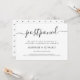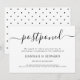 Tarjeta de anuncio de boda aplazada moderna en negro y blanco con un patrón de lunares en la parte posterior. Si ha tenido que cambiar la fecha de su boda, esta es una excelente manera de informar a sus invitados.