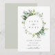 Esta invitación de anuncio de boda cuenta con un marco circular y follaje de eucalipto pintado a la acuarela, hojas verdes. Para una personalización más avanzada de este diseño, por favor haga clic en el enlace "Personalizar más". También hay disponibles artículos que coinciden.