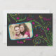 Personalice el texto y la foto en esta tarjeta de anuncio de boda de pizarra con tiza de neón con garabatos florales para guardar la fecha de la boda. Los colores son rosa neón, amarillo neón, azul neón y verde neón sobre un fondo de carbón oscuro. ¡Qué divertida invitación para una boda informal y extravagante! Puede cambiar el texto y la foto con las opciones de personalización. Para realizar cambios más amplios en la tarjeta, como cambiar la fuente, el color de la fuente, el tamaño de la foto, la ubicación de la foto o la disposición del texto, utilice la opción de personalización. Esta es una tarjeta divertida para guardar la fecha de una boda menos tradicional. Serían geniales para una boda que tenga lugar en un café divertido. Algunos productos que combinan que podrían gustarle: