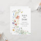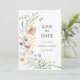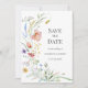 Una delicada tarjeta de anuncio de boda con flores silvestres en acuarela suave en tonos pastel suaves. Perfecta para parejas que planean una ceremonia romántica en un prado, cottagecore, rústica o al aire libre. La disposición limpia y los detalles botánicos pintados a mano crean un ambiente elegante y atemporal. Personaliza fácilmente para que coincida con el estilo de tu boda.