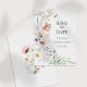 Tarjeta de anuncio de boda con flores silvestres e