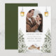 Anuncia tu boda con un estilo invernal acogedor con esta tarjeta de anuncio de boda rústica. Con una encantadora escena de cabaña nevada enmarcada por árboles de hoja perenne y faroles, este diseño emana calidez y elegancia natural. Agrega tu foto y personaliza los nombres y la fecha para un recuerdo único y sincero que tus invitados amarán.