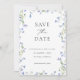 Tarjeta de anuncio de boda con foto floral azul pa