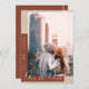 Tarjeta de anuncio de boda con foto y letra script terracota. Anuncia tu boda con estilo con esta tarjeta de anuncio de boda con una superposición de letra moderna y diseño de foto completo. Los tonos cálidos y terrosos y la tipografía chic le dan un ambiente acogedor y contemporáneo, perfecto para bodas de otoño o celebraciones urbanas.