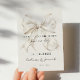 Invitación de anuncio de boda "nos estamos casando" con un diseño de lazo blanco elegante y fuente de letra manuscrita.