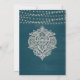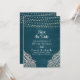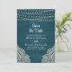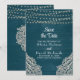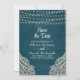 Agrega un toque de encanto bohemio a tus invitaciones de boda con este diseño de tarjeta de "Save the Date" con luces de cuerda rústicas y caprichosas en color azul oscuro. El fondo de madera azul oscuro prepara el escenario para una celebración mágica, adornado con luces de cuerda brillantes que crean una atmósfera romántica. Delicados patrones de encaje floral blanco enmarcan las esquinas de la invitación, agregando un toque elegante y femenino. La combinación de una fuente de escritura vintage y una fuente serif legible en blanco crea un hermoso contraste contra el fondo oscuro, lo que garantiza que todos los detalles sean fácilmente legibles. Esta invitación es perfecta para parejas que buscan un tema de boda único y encantador.