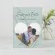 Diseño moderno y colorido de tarjeta de anuncio de boda en color menta con marco de foto en forma de corazón, texto personalizado y colores de fondo. Contacte con el diseñador para consultas de diseño