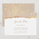 Esta elegante tarjeta de anuncio de boda presenta mármol con brillo dorado y venas doradas falsas sobre un fondo blanco. La parte posterior presenta un fondo con apariencia de mármol brillante dorado. Perfecta para bodas glamurosas, lujosas y chic.