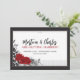 Haga saber a sus invitados sobre su próxima boda con esta tarjeta de Anuncio de Boda con tema de rosas rojas románticas. El diseño presenta un marco negro con dos rosas rojas entrelazadas con follaje negro y gris. La parte posterior presenta un diseño de marco negro decorativo sobre un fondo rojo. Compre los artículos de boda coordinados para que coincidan (se venden por separado). Los artículos coincidentes se pueden encontrar en nuestra colección 'Rosas Rojas Románticas Entrelazadas'.