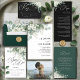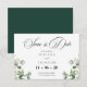 Anuncia tu boda con estilo con nuestra Tarjeta de Anuncio de Boda con Verde Esmeralda Moderno. Con un hermoso diseño de acuarela de hojas de eucalipto combinadas con delicadas flores de jazmín, esta tarjeta complementa perfectamente tu tema de boda de vegetación o acuarela. Su elegancia atemporal e inspirada en la naturaleza asegura que tus invitados marquen sus calendarios para tu día especial.