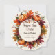 Celebre su próxima boda con un acogedor estilo otoñal con esta tarjeta circular de "Save the Date" de estilo rústico. Con llamativas calabazas pintadas con acuarela, hojas de otoño, bayas y bellotas en cálidos tonos estacionales, este diseño captura perfectamente el encanto de una cosecha de otoño. El diseño circular enmarca los detalles de su boda en el centro, haciéndolo elegante y memorable. Ideal para bodas rústicas, celebraciones en graneros y fiestas en jardines de otoño. Una hermosa opción para parejas que aman los ricos colores y la belleza natural del otoño.