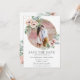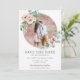 Resalta tu foto previa a la boda con esta tarjeta de aviso de guardar boho chic. Con hermosas rosas y amapolas de color rosa polvoriento y vegetación de eucalipto en acuarela. Diseñado para coincidir con nuestra colección de bodas Cherise. Personalízala con tus detalles de manera fácil y rápida, simplemente presiona el botón de personalizar para reorganizar y dar formato al estilo y ubicación del texto.