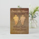 Dos novios se toman de la mano en esta tarjeta de anuncio de boda con estilo rústico para una boda gay. Alerta a tu familia y amigos para que puedan despejar su calendario para tu gran día.