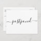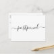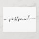Tarjeta postcard de anuncio de boda pospuesta moderna en blanco y negro. Si ha tenido que cambiar la fecha de su boda, esta es una excelente manera de informar a sus invitados.