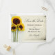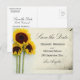 Tarjeta de anuncio de boda rústica con girasoles. Un girasol amarillo brillante es el fondo para esta tarjeta de anuncio de boda personalizada.