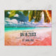 Tarjetas postales de anuncio de boda para su boda de destino tropical en las Islas Vírgenes de los Estados Unidos o cualquier otro lugar de playa tropical. Aguas turquesas, arena blanca y diseño de palmeras en tarjetas de anuncio. Personalice con la fecha y nombres de su boda.