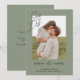 Esta tarjeta de anuncio de boda en verde salvia boho es la forma perfecta de anunciar su próxima boda con estilo y encanto. Esta clásica tarjeta de anuncio de boda cuenta con un fondo de verde salvia bellamente diseñado que crea un estilo rústico y chic que seguramente cautivará los corazones de sus invitados. El punto culminante de esta tarjeta es la sección de fotos personalizable, que le permite agregar un toque especial al incluir una foto de usted y su pareja que capture su amor y personalidad. La tipografía también es totalmente personalizable, lo que le da la libertad de elegir la redacción que mejor se adapte a su evento.