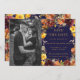 Resalte su foto pre-nupcial con esta tarjeta de anuncio de compromiso con estilo boho chic. Con una hermosa corona de flores de acuarela en tonos borgoña, amarillo, naranja quemada y follaje verde. Personalícela con sus detalles de manera fácil y rápida, simplemente presione el botón de personalizar para reorganizar y dar formato al estilo y ubicación del texto.