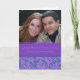 Tarjeta de anuncio de compromiso con un diseño vibrante y elegante de remolinos de azul teal y morado oscuro, única y con estilo, personalizable con tus nombres y tu propia foto, la forma perfecta de compartir tus felices noticias con familiares y amigos.