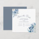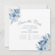 Tarjeta de aviso de fecha de boda de flores silvestres azul polvoriento elegante con acentos florales suaves azules y blancos y una disposición limpia y aireada. Perfecta para anunciar su boda en un estilo atemporal y romántico.