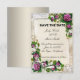 Hermosas flores de hortensias moradas con adornos de encaje. Esta preciosa tarjeta de "save the date" es una forma elegante de anunciar tu gran día. Personaliza la tarjeta cambiando el texto en los campos proporcionados. Puedes cambiar el estilo, tamaño y color de la letra.