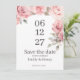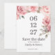 Tarjeta de aviso de fecha de boda con flores rosadas