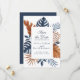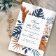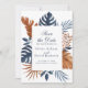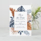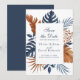Anuncia tu día especial con nuestras exquisitas tarjetas de "Save the Date" de boda Midnight Blue Monstera. Esta impresionante adición a nuestra colección presenta un diseño único, que combina los elementos cautivadores del azul de medianoche y el marrón rústico con un fondo similar a ladrillos blancos.