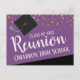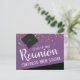 Tarjetas postales para guardar la fecha de la reunión de la escuela secundaria o clase. Diverso confeti de lámina de oro falso con texto blanco en negrita. Todo el texto es personalizable y se puede cambiar según las necesidades de su fiesta. morado