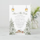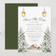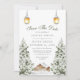 Abraza la serena belleza del invierno con esta tarjeta de "save the date" con tema de cabaña rústica. Con una encantadora escena de pinos cubiertos de nieve y una acogedora cabaña, este diseño captura la esencia de un paisaje invernal tranquilo. Acertadamente acentuada por lámparas vintage cálidas que cuelgan arriba, esta invitación evoca sentimientos de calidez y tranquilidad perfectos para bodas de invierno. Ideal para parejas que buscan celebrar su día especial con un toque de elegancia rústica y el encanto invernal de la naturaleza.