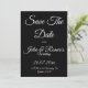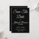 Anuncie su día especial con estilo atemporal con esta elegante tarjeta de "Save the Date" negra que presenta letras en escritura blanca clásica. Diseñada para parejas que aman la sofisticación moderna con un toque de romance, esta tarjeta de boda minimalista en blanco y negro causa una primera impresión audaz y refinada.