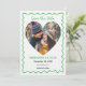 Anuncia tu día especial con esta encantadora tarjeta de anuncio de fecha de boda que presenta un marco ondulado verde juguetón y una disposición de foto en forma de corazón. Diseñada con un ambiente acogedor y moderno, destaca perfectamente tu foto de pareja favorita mientras mantiene los detalles limpios y elegantes. Personaliza fácilmente los nombres, la fecha y la ubicación para crear un recuerdo memorable que establece el tono para tu próxima celebración.