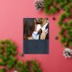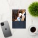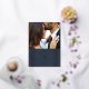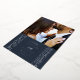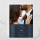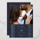 Anuncie su compromiso o fecha de boda con esta elegante tarjeta de anuncio de fecha. Una foto de la feliz pareja se muestra de manera prominente en la parte superior de la tarjeta, mientras que un marco decorativo y ornamentado se coloca debajo. El marco, así como los detalles del evento, están presionados en hojalata dorada o plateada para agregar elegancia. La parte posterior de la tarjeta presenta un respaldo coordinado con un sutil textura pintada.