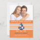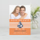 Esta tarjeta de anuncio de fecha de boda cuenta con un ancla azul sobre rayas naranjas. Fresca y moderna con un espacio para la foto de la pareja favorita en la parte superior. Fácilmente personalizable con la información de su boda. :: SOBRES INCLUIDOS ::