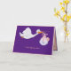 Una divertida y linda cigüeña entrega con orgullo a una bebé (rosa para niñas) diseño en la nota, invitación para baby shower, o anuncio de nacimiento y/o tarjeta de felicitación. Personalice completamente con un saludo, agradecimiento, deseos de celebración, pésame, invitación o lo que desee. Cree su propio mensaje interno con texto personalizado - o elimine para un mensaje manuscrito personal o cita. Esta tarjeta de felicitación fue creada para personalizar completamente - incluso reemplazando la imagen con su propia gráfica o foto personal.