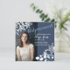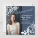 Pueden ocurrir cambios de fecha inesperados. Envíe a sus invitados comprensivos una tarjeta de aplazamiento o cambio de fecha gris azulado, ¡y hágales saber que una invitación formal seguirá! El marco de encaje blanco mostrará su foto hermosamente. Estas tarjetas de anuncio de aplazamiento son encantadoras con papelería y detalles de fiesta coordinados. Personalice fácilmente esta tarjeta para un Bat Mitzvah, Quinceañera, cumpleaños de adolescente, boda, graduación o celebración de aniversario que tenga que posponerse.