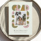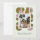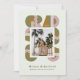 Tarjeta de anuncio de graduación con foto de estilo retro, pero moderna, que presenta la palabra "GRAD" diseñada con formas geométricas en varios colores que forman un borde alrededor de la foto del graduado. Los colores retro -verde, rosa, marrón- añaden al estilo retro de la tarjeta.