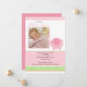 Nuestro lindo elefante rosa con una tarjeta de anuncio de nacimiento de foto de niña bebé con flor es una forma dulce de anunciar a su familia y amigos que su pequeña ha llegado. La tarjeta de anuncio de foto presenta al elefantito más lindo sosteniendo una flor. ¡Agregue su foto e información y estará listo para comenzar! © cocoa studio
